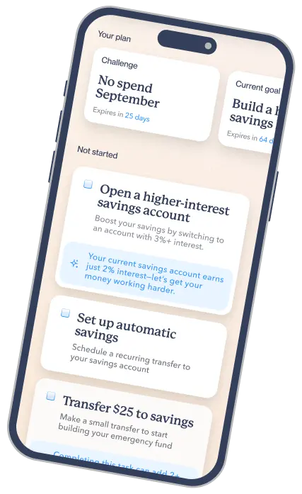 Start with a personalized Financial Health Score that gives you a full picture of where you stand across saving, spending, debt, investing, and more.